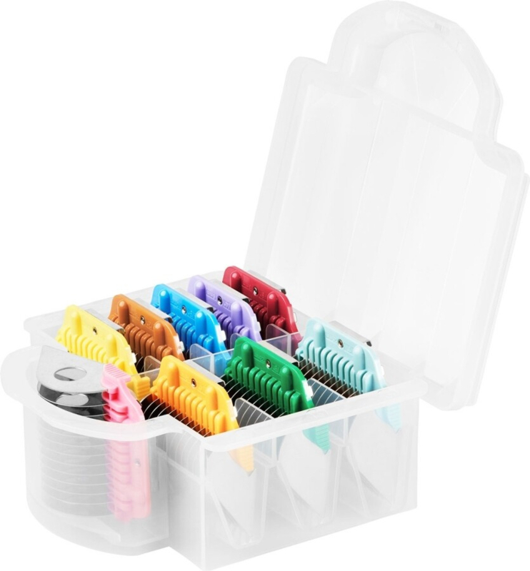 Professionele Aesculap opzetkammen voor Wide Snap-On scheerkoppen. Deze complete set met 10 trimlengtes wordt geleverd in een stevige opbergbox en is perfect voor hondentrimmers, en veeleisende hondeneigenaren die een strak en gelijkmatig scheerresultaat willen.