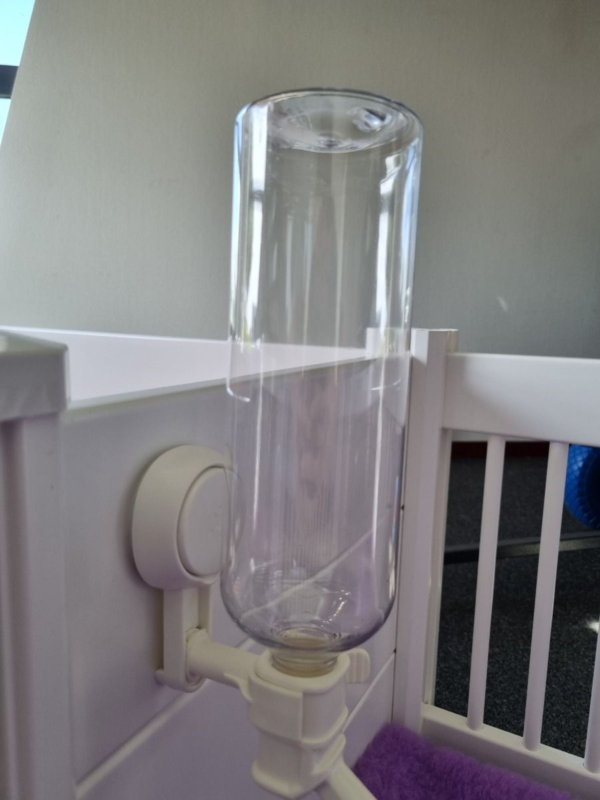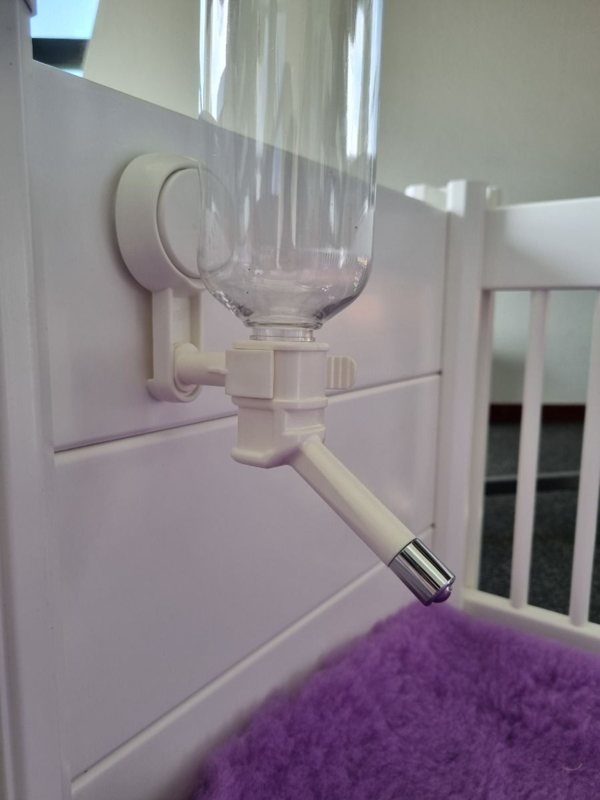 Deze drinkfles zorgt ervoor dat pasgeboren puppy’s altijd toegang hebben tot vers en schoon drinkwater, waardoor morsen wordt geminimaliseerd in de werpkist. Dankzij de stevige zuignap blijft de fles veilig op zijn plaats zelfs bij actieve puppy’s.