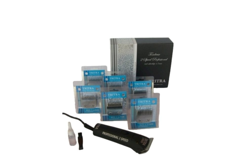 Tritra 2 speed tondeuse incluisef 1,5mm scheerkop en drie fijne scheerkoppen om voor te werken en 3 grove scheerkoppen om af te werken size 7F (3,2mm)+ size 5F(6,3mm) + size 4F (9,5mm)